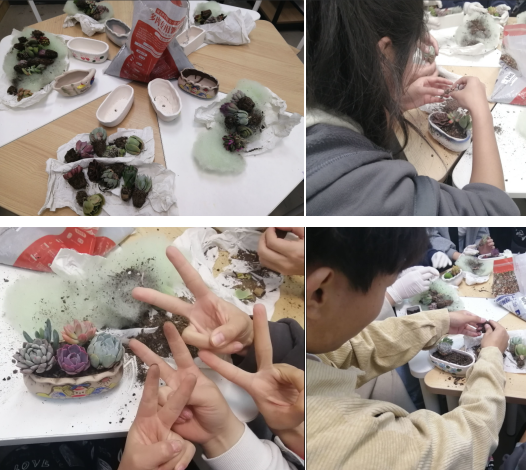 同学们完成作品之后,分别分享了创作心得和活动体验,“开心、新奇,有趣。”“多肉太可爱了,很开心的一次体验。”“感觉自己的动手能力加强了。”大家积极交流、互相帮助,现场充满了欢乐的笑声。