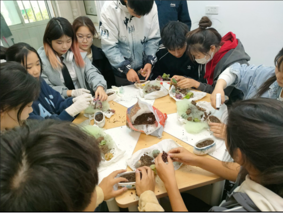 材料公司如是心理协会成员郝佳媛向大家介讲述了本次活动的目的,种植多肉的步骤及其注意事项。几十种不同品种、形态各异的多肉,供大家自由选择、自由搭配。从剥离泥土、调配基质到栽种多肉,参与的同学们认真对待每一个步骤。虽然是第一次从事园艺活动,但是大家热情高涨、静心专注。