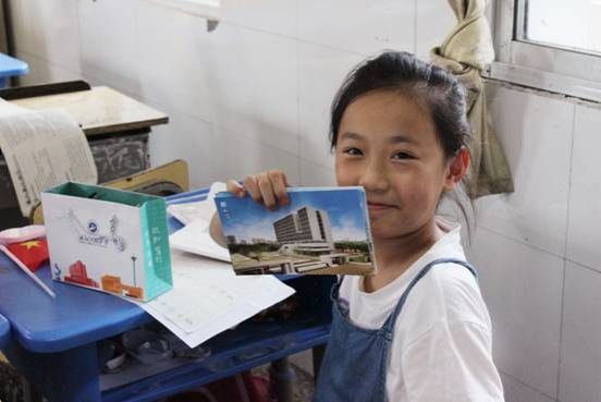 张琼一行为赤壁镇中学小朋友送上精心准备的小礼物,一人一份武工大明信片、一只签字笔、一盒彩笔、一串卡通钥匙扣,希望小朋友们认真学习,快乐生活。