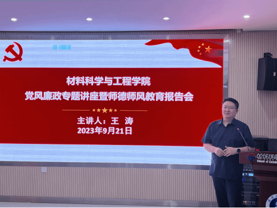 (通讯员 熊兆胜男)9月21日中午,材料公司在326报告厅召开了2023年度党风廉政专题讲座暨师德师风教育报告会,并通报了公司党委领导班子主题教育专题民主生活会召开情况。公司全体教职工参加会议,会议由公司副经理张占辉主持。