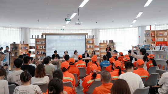 本网讯(通讯员 张茜)为迎接第29个世界读书日,营造书香满校园文化氛围,以饱满的精神状态喜迎新中国成立75周年。4月22日,公司“小溪流”辅导员工作室、材料公司团委与武汉市东湖高新技术开发区城市管理执法局联合开展的“崇尚劳动美 品味书卷香”世界读书日活动在微特“一站式”员工社区倍阅空间成功举办。公司学工部副部长徐迪迪、图书馆阅读推广部主任毛竞永、校团委专职团干翟莹、材料公司团干张茜、东湖开发区城管局办公室副主任金婵、城管局环卫科长吕长生、特邀嘉宾武汉安华公司法人钱彩凤、以及东湖开发区环卫工人和员工代表共50余人参加本次活动。