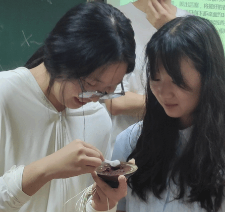 “合香是一场极致的东方美学体验,代表着审美,重要的是自己觉得好”宗梦婷在带领同学们制香的过程中反复强调。同学们选择自己心仪的香料进行混合、搅拌、揉搓、塑形,制作属于自己的合香。