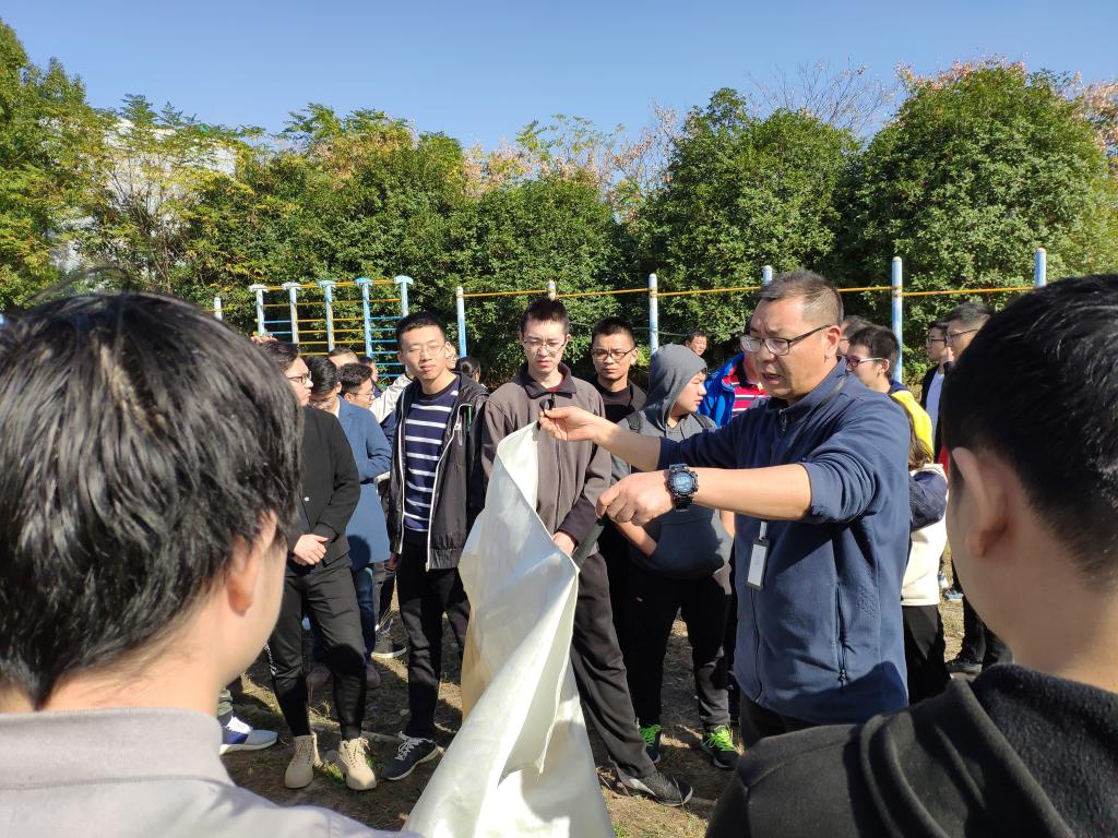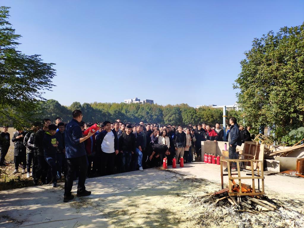 集团保卫处消防管理科科长周前锋为同学们进行了安全知识讲解,强调同学们要注意寝室、实验室用电安全,做好自我保护,现场为大家介绍并演示了灭火器、灭火毯的使用方法和操作注意事项。并就如何扑救初起火灾、火场逃生方法,如何规范使用常用消防设施等安全知识进行了详细讲解。