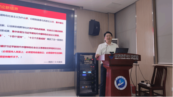 王涛以《学习习近平新时代中国特色社会主义思想,做有理想、敢担当、能吃苦、肯奋斗的新时代好青年》为主题,解读了此次主题教育的重要意义,重点阐释了习近平新时代中国特色社会主义思想的世界观和方法论,即“六个必须坚持”,他在讲述中结合公司的专业特色和工作实际,运用了典型的案例、喜闻乐见的故事、详实的数据,教育全体师生在学习生活和工作中要坚持好、运用好贯穿于习近平新时代中国特色社会主义思想的立场观点方法。